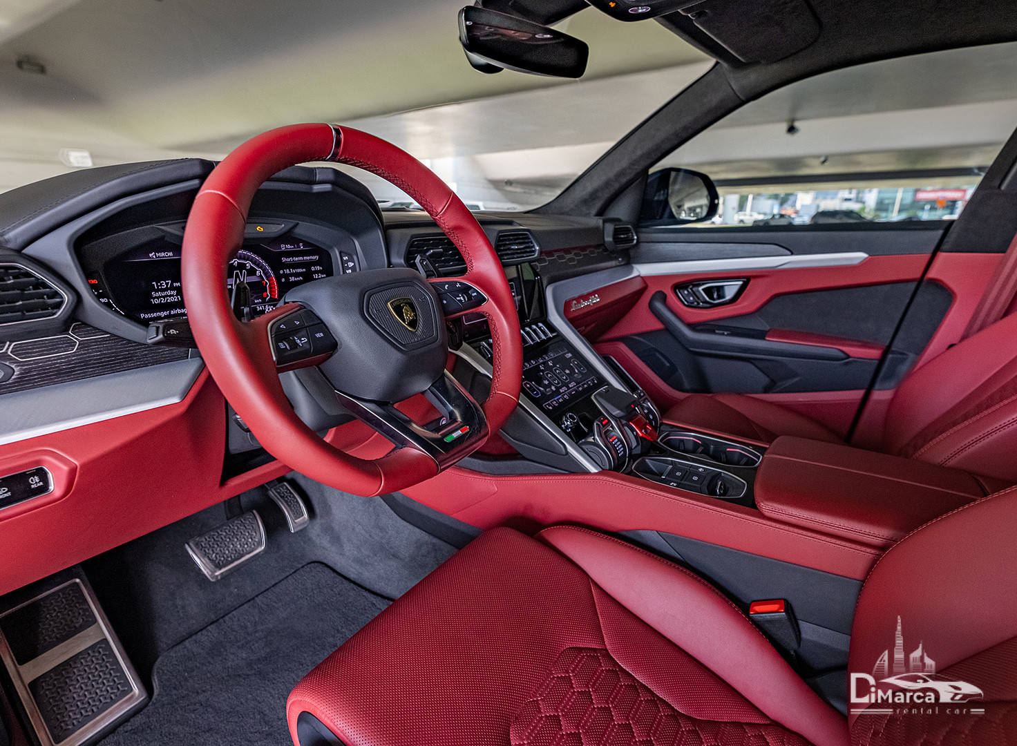 Салон сохранил свой характерный спортивный облик традиционного суперкара от Lamborghini. Внутри авто отделано красной и черной алькантарой, и даже рулевое колесо обтянуто этим материалом. Дизайн салона напоминает кабину самолета.